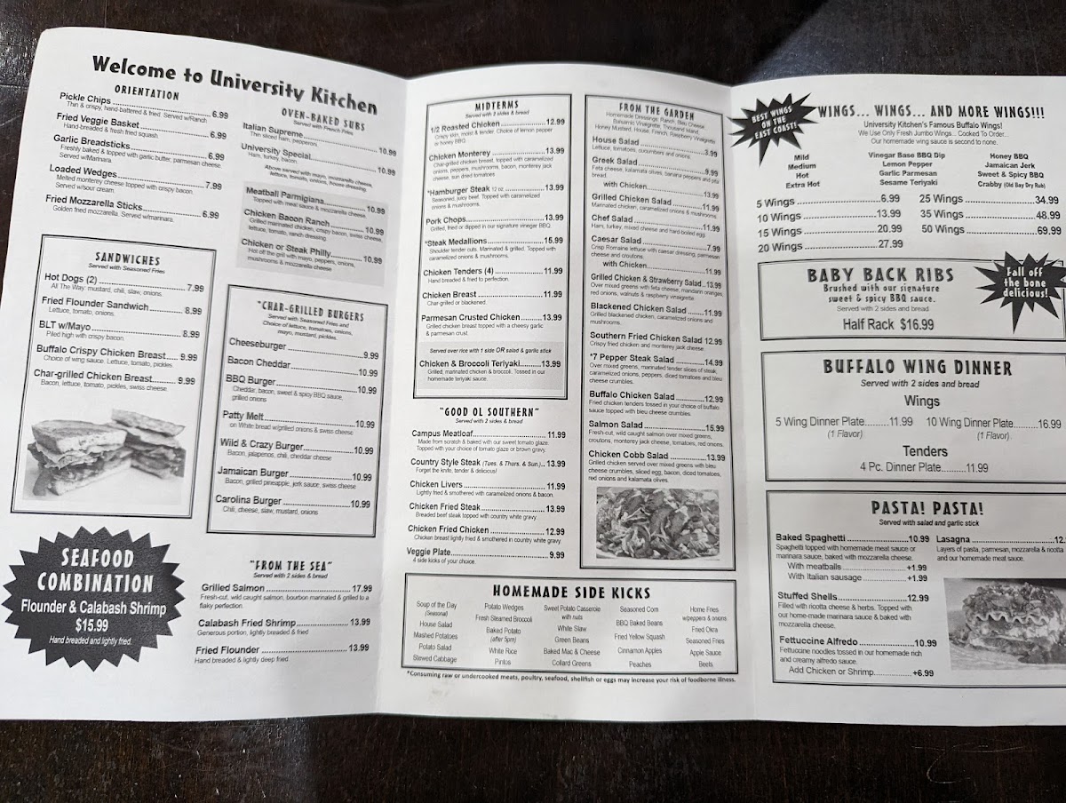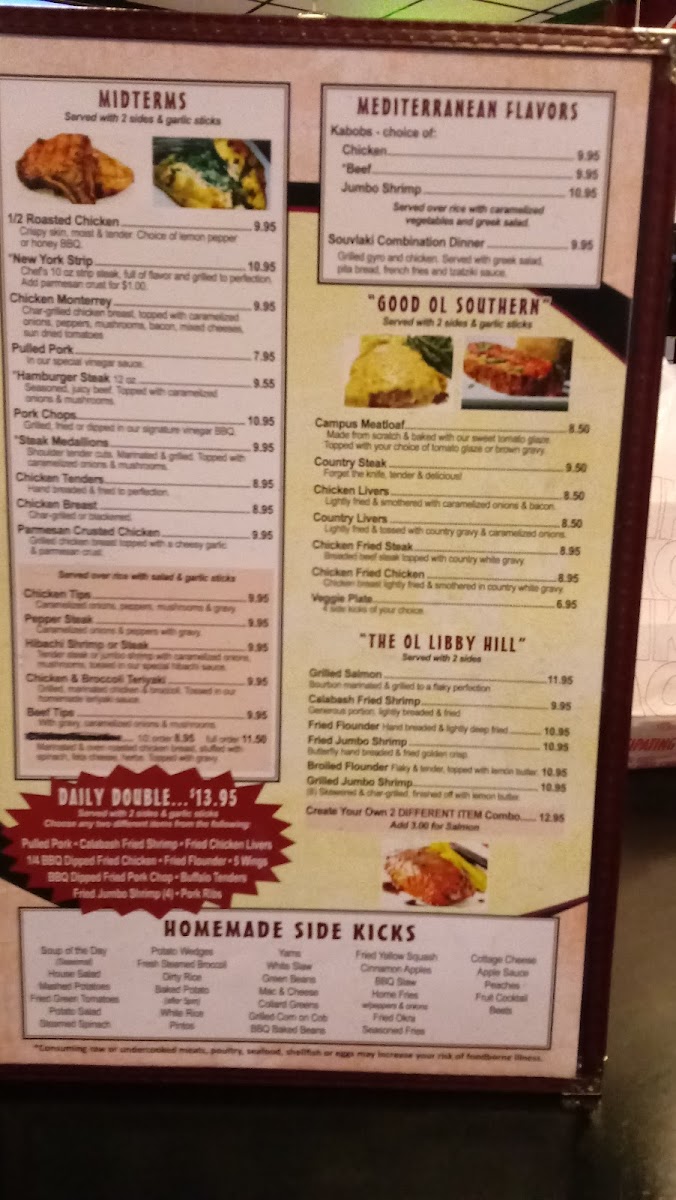 Flounder and calabash shrimp. Hand breaded and lightly fried. Served with two sides and bread.